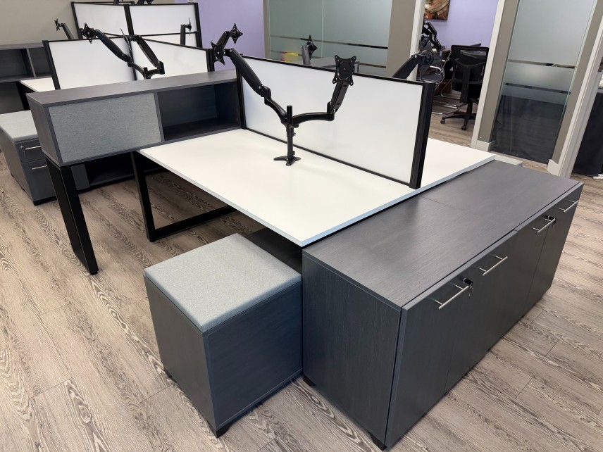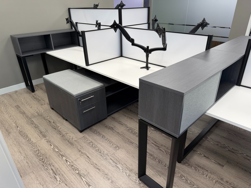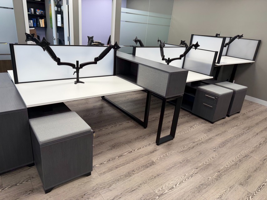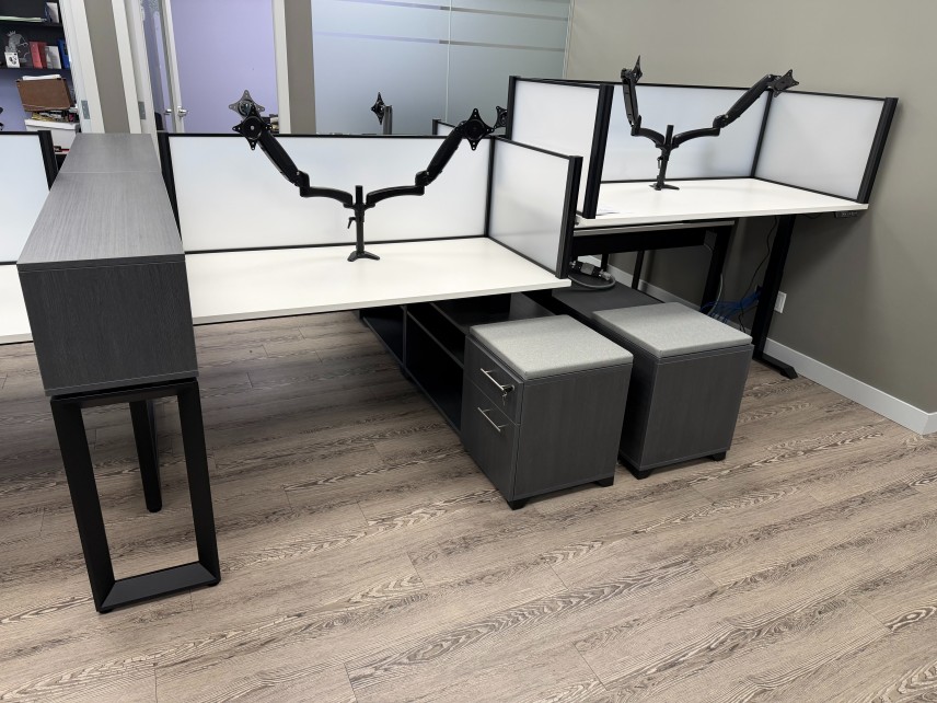 Out of the six workstations, one was specified as height-adjustable to accommodate the ergonomic needs of a team member. The adjustable station integrates seamlessly with the benching system while providing flexibility and comfort.